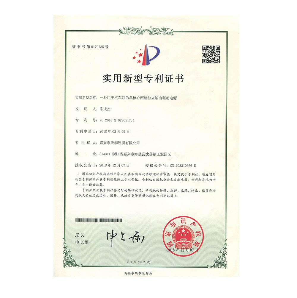 一種用于汽車燈的單核心兩路自力輸入驅動電源201820236517 .4-1